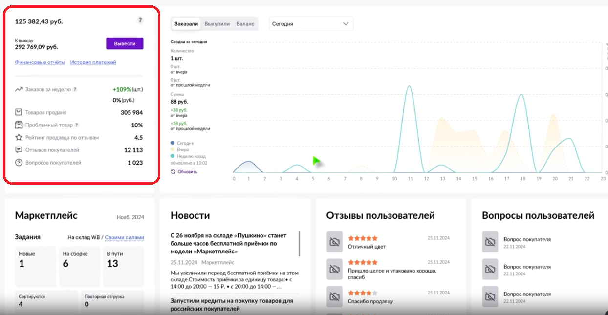Селлеру маркетплейса доступны разные инструменты внутренней статистики продаж на портале WB Партнеры. Движение средств на балансе личного кабинета в режиме онлайн отображается в виджете «Баланс», который находится на главной странице портала.