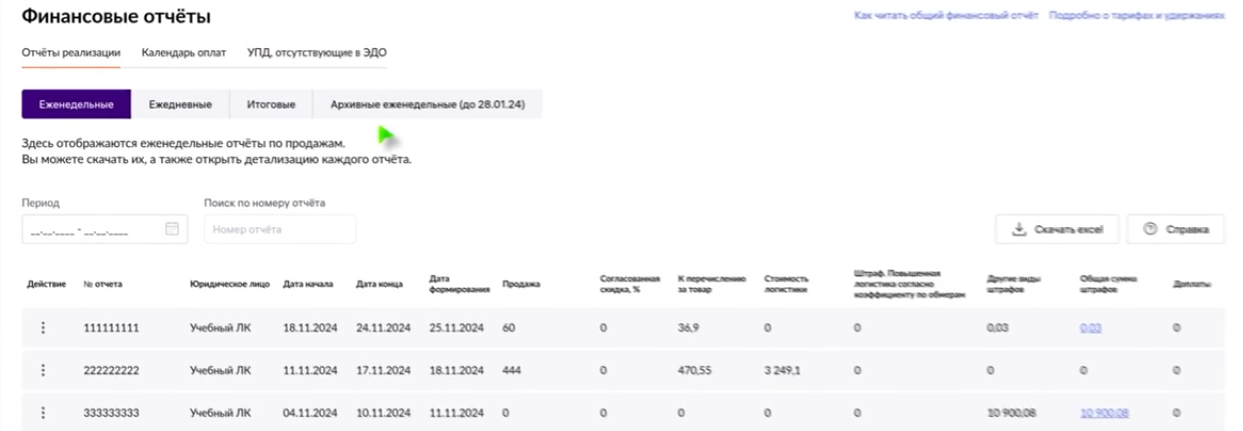 Точные данные по движению средств в динамике представлены в еженедельных отчетах реализации, которые формируются через 7 дней после завершения отчетного периода. Все прочие отчеты предназначены для оперативного анализа и управления. Подробнее узнать о правилах составления финансовых отчетах можно в разделе «Справка» и в гайде, доступном по активной ссылке «Как читать общий финансовый отчет».