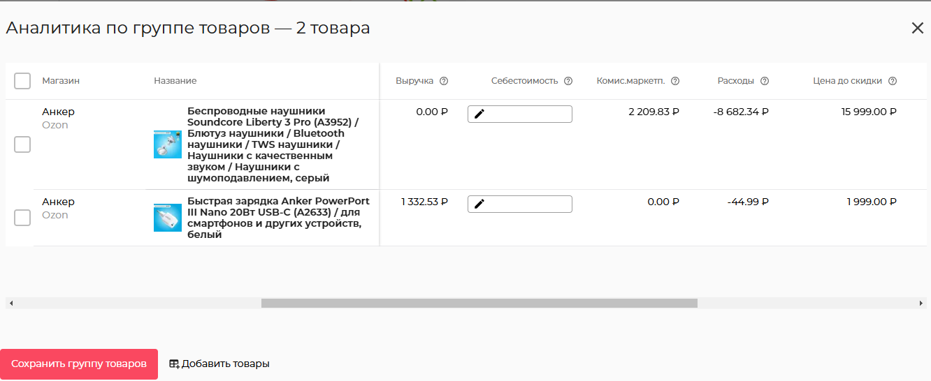 В сервисе E-Commerce Tool есть инструмент для работы с группами продуктов. Сохраняем группы товаров по поставщикам, категориям продукции и другим признакам, получаем быстрый доступ к нужным метрикам по выборке.