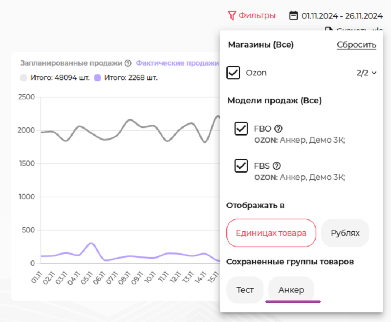 Доступ к сохраненным группам товаров — во вкладке Фильтры.