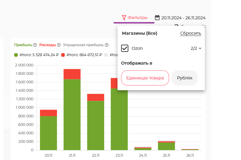 категории данных в отчете. Отчет продаж/расходов смотрим на одном графике или убираем из статистики любую из метрик (для этого кликаем на знак вопроса возле параметра);