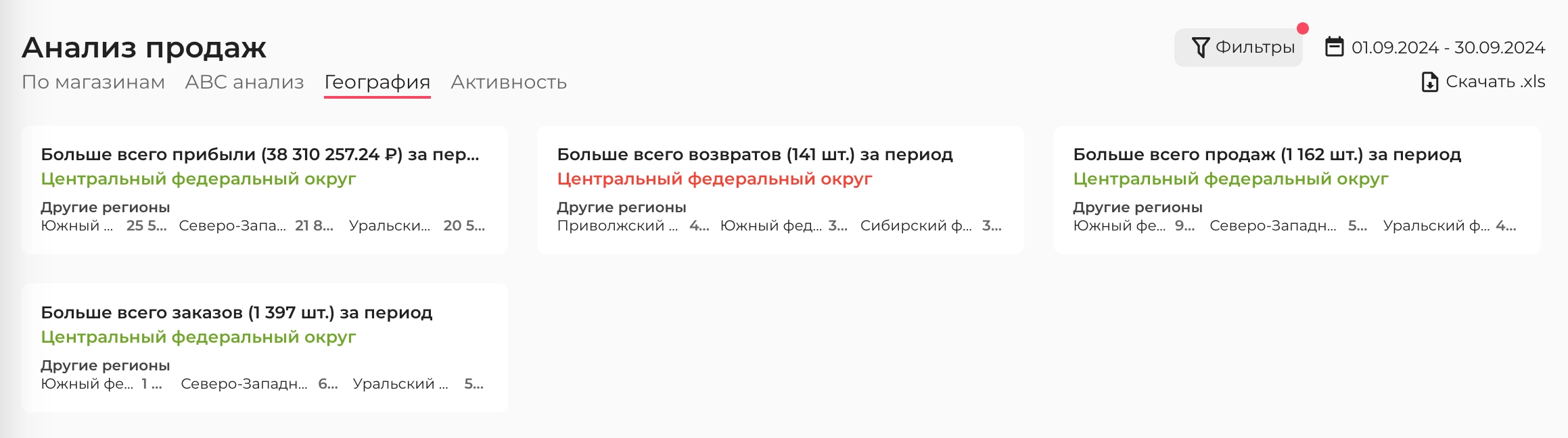 Региональный отчет по реализации поможет понять уровень спроса в привязке к месту.