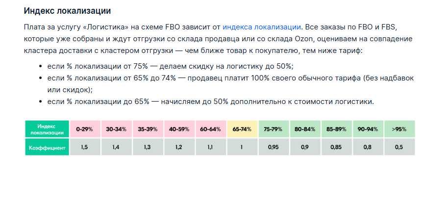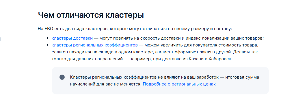 Расчет ИЛ напрямую связан с кластерами Ozon. Они не совпадают с географическими границами регионов, поэтому при выборе кластера полезно уточнять его актуальные рамки. Заказы, доставляемые со склада в том же кластере, называют локальными. Чем больше локальных заказов, тем больше предприниматель экономит на логистике.