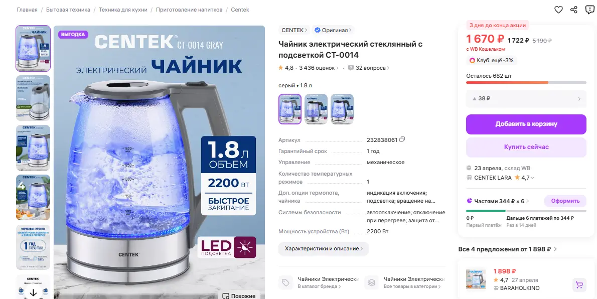 оценить спрос в нише электрических чайников на площадках, где он собирается их продавать;