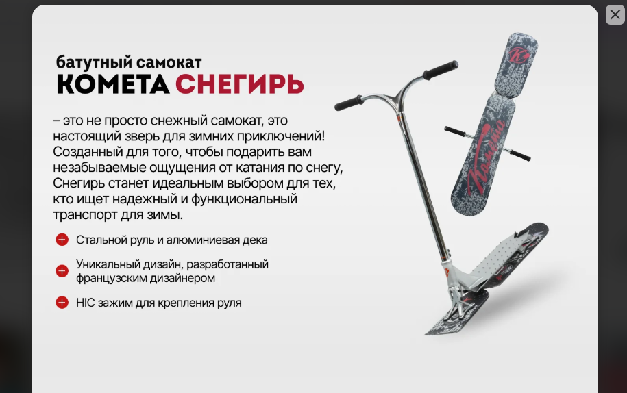 Спорттовары. Рич контент идеален для того, чтобы покупатель почувствовал себя пользователем велосипеда или самоката.
