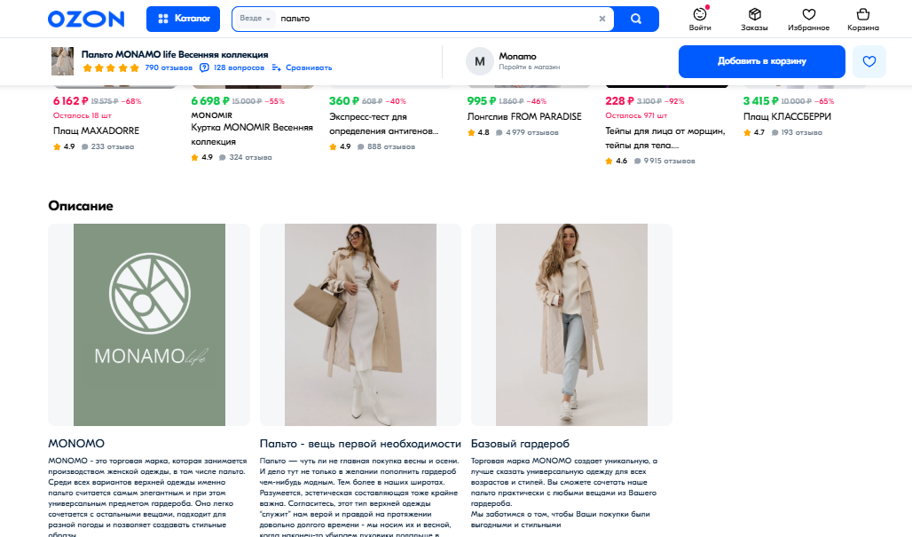 В карточках на Озоне мультимедийную презентацию можно найти под блоком рекомендованных товаров как в десктопной, так и в мобильной версии.