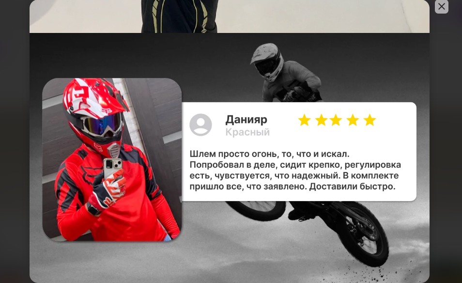 Распаковка и рассказ о преимуществах. В rich-презентации можно раскрыть преимущества во всей красе: описать достоинства использованных материалов и технологий, поделиться информацией о производителе, упомянуть об экологичности и других этически важных моментах.