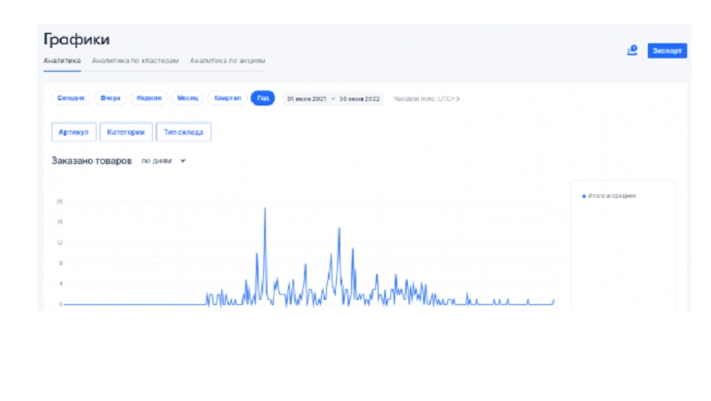 сколько товаров было продано за выбранный период. Выгружать продажи можно по категории, артикулу и другим метрикам;