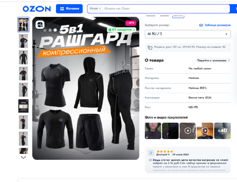 Доступны разные варианты оформления rich-контента: картинки с текстом, лендинг, видео. На Озоне даже есть встроенный конструктор для сборки rich-презентаций.